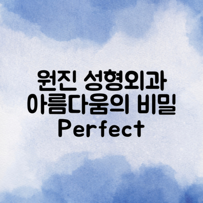 결론적으로, 원진 성형외과의 개인 맞춤형 접근은 각 환자의 니즈를 충족시키며, 결과적으로 만족스러운 아름다움을 이끌어낼 수 있습니다.