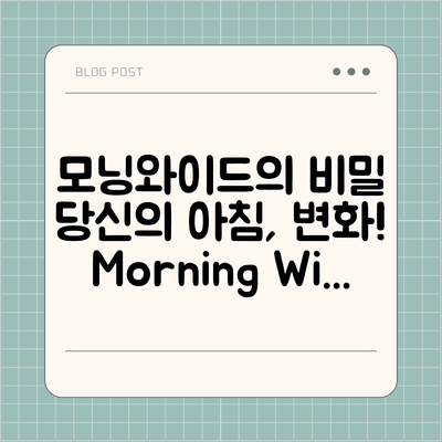 당신의 아침 시작을 더욱 특별하게 만들어 줄 모닝와이드돈스토리의 비밀을 공개합니다. 매일 아침에 잠깐의 시간을 투자하면, 하루를 보다 생산적이고 의미있게 만들 수 있습니다.