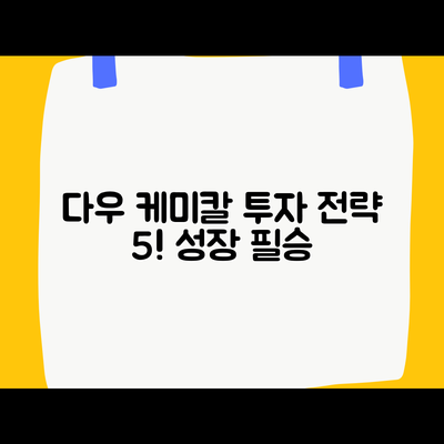 다우 케미칼은 세계 2위의 화학 기업으로 인정받으며, 지속 가능성을 최우선으로 고려한 투자 전략을 구사합니다. 이 기업은 다양한 화학 제품 및 솔루션을 통해 고객의 기대에 부응하고 있으며, 앞으로의 성장 가능성에 주목할 만합니다. 다우 케미칼의 투자 전략은 다음과 같은 핵심 요소로 구성됩니다.